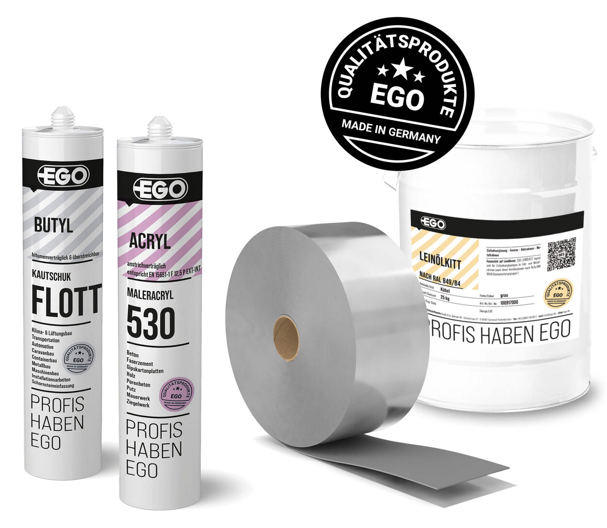 EGO is your partner for sealants and adhesives - that's why we want to make it as easy as possible for you to order directly from our online store. After registering as a tradesman or dealer, you can order EGO products such as Butyl tapes, acrylic sealants and silicone directly online in the catalog. Pay conveniently by invoice or PayPal and EGO will deliver directly to your desired location. Get the best advice from our team of experts - if you are not sure which sealant or adhesive is best suited to your application, you can request advice from the EGO experts at any time, either by email at info@ego.de or by phone on +49 (0)8821 9569 0.