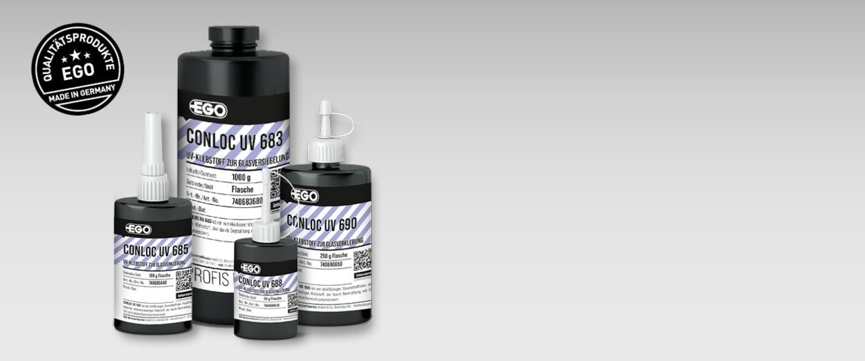 The standard products in the UV adhesives range have been developed for a wide range of materials and have excellent adhesive properties. They can be dispensed in a controlled and precise manner, allowing even complex or intricate components to be joined securely. With their fast curing under UV light, they offer an efficient solution for industrial manufacturing processes where time and precision are crucial.