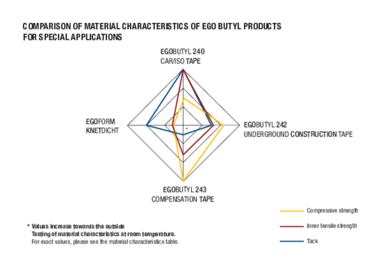 EGO Butyl tapes are malleable sealing tapes with precise profile structures, which have been used as an addition or alternative to the usual injection sealants for more than 40 years. The versatile material properties of the EGO Butyl products and the individual forms offer an extraordinary range of possible applications. They comply with the application recommendations of the IVD leaflet no. 5. International test certificates and expert reports confirm the excellent characteristics of the EGO products.