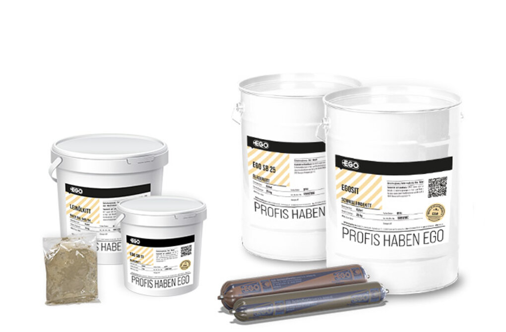 Zudem bietet EGO spezielle Glaserkitts, das SB 11 und SB 25, an. Das SB 25 als weichplastischer Glaskitt eignet sich für alle Beanspruchungsgruppen (1 -5) nach Rota.