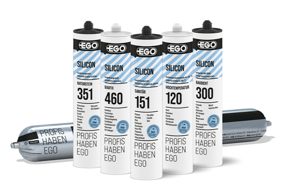 EGO has been producing high-quality, ready-to-use silicone sealants for more than 50 years. Thanks to their outstanding properties, the silicones are able to meet a wide range of sealing requirements in different areas. All silicones are characterized by very good adhesion, high resistance to ageing and excellent resistance to UV, weathering and chemicals. Fungicidal silicones give mold and water damage a chance. Our aim is to guarantee a durable and functional joint in many areas of application.