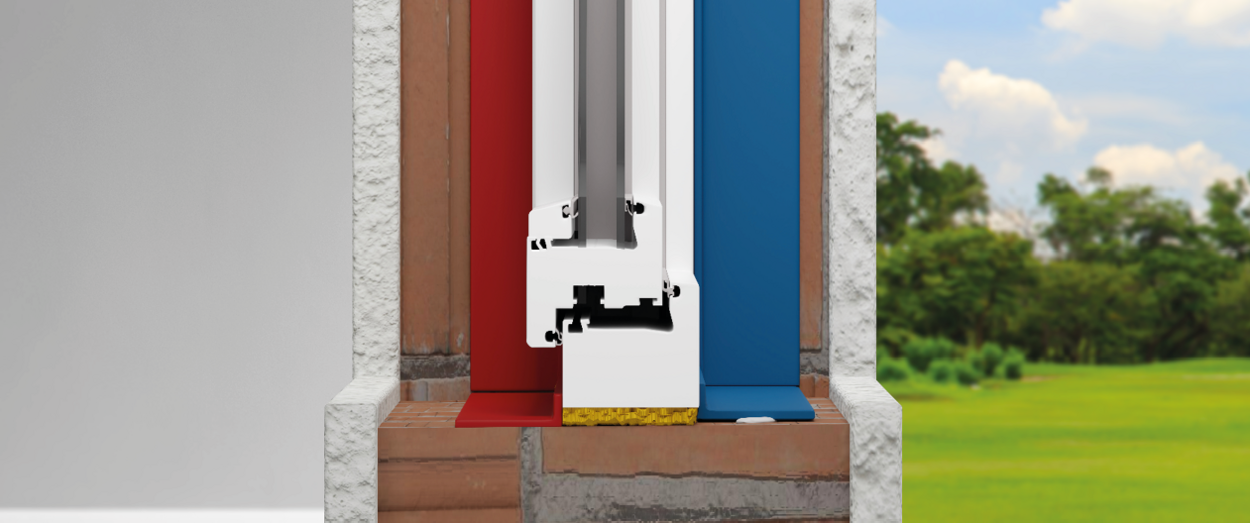 Einsatz finden synthetische Vliese mit selbstklebender Folienkaschierung sowie Butyl‑ und PUR‑Dichtbänder, die flexibel, witterungsbeständig und mechanisch beständig sind.