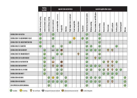 In production, it is a matter of course for us to account for environmental protection requirements through implementation of state-of-the-art processes. Our EGOSILICONE meet the VOC requirements according to the EMICODE, AgBB (German Committee for Health-Related Evaluation of Building Products), french VOC class and KMR regulation and according to LEED (Leadership in Energy and Environmental Design).