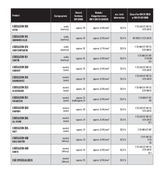 For more than 50 years, EGO Dichtstoffwerke has been producing high-quality, ready-to-use silicone sealants that are vulcanised to form elastic end products. Due to their excellent properties, EGOSILICONES are the solution for many sealing and bonding problems. All products are characterised by excellent adhesion, maximum ageing resistance and outstanding resistance to UV, weather and chemicals.