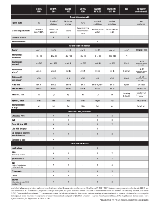 - parfaitement compatibles avec la plupart des matériaux de construction connus, ainsi que des feuilles sans plastifiant et des éléments de construction en plastique, comme le polycarbonate, le polyacrylate, le PVC dur, le polyéthylène, etc.