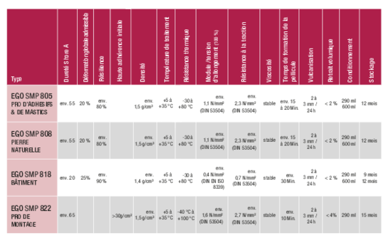Le polymère SMP est un produit adhésif / matériau d'étanchéité élastique à multiples possibilités d'utilisation. Nos produits EGO SMP sans solvants se distinguent par des applications à faibles émissions et de longue durée, à l'intérieur aussi bien qu'à l'extérieur.
