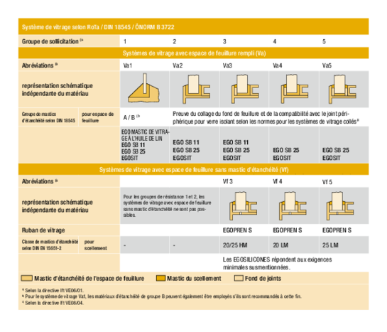 Par ailleurs, EGO propose également des mastics de vitrier spéciaux, le SB 11 et le SB 25. Mastic plastique souple, le SB 25 convient pour tous les groupes de sollicitation (1-5) selon le RoTa.