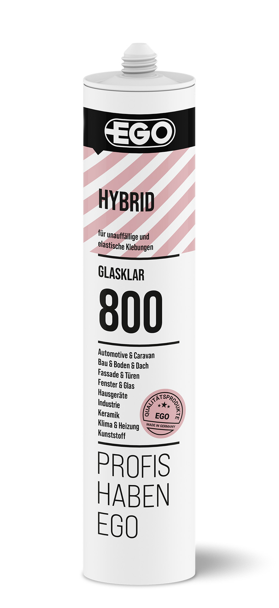 EGO HYBRID 800 GLASKLAR ist ein einkomponentiges, elastisches 1K-Hybrid für unauffällige Kleb-/Dichtstoffanwendungen. Das Produkt härtet mit Luftfeuchtigkeit zu einem elastischen Endprodukt aus.