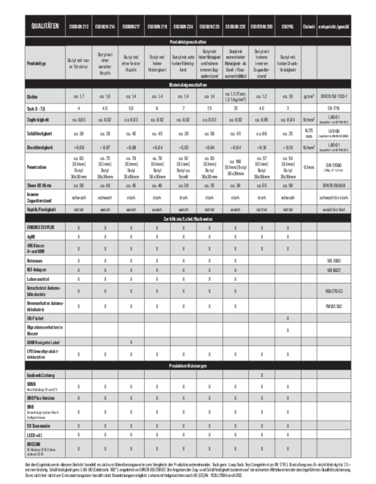 Materialeigenschaften der EGOBUTYLE
